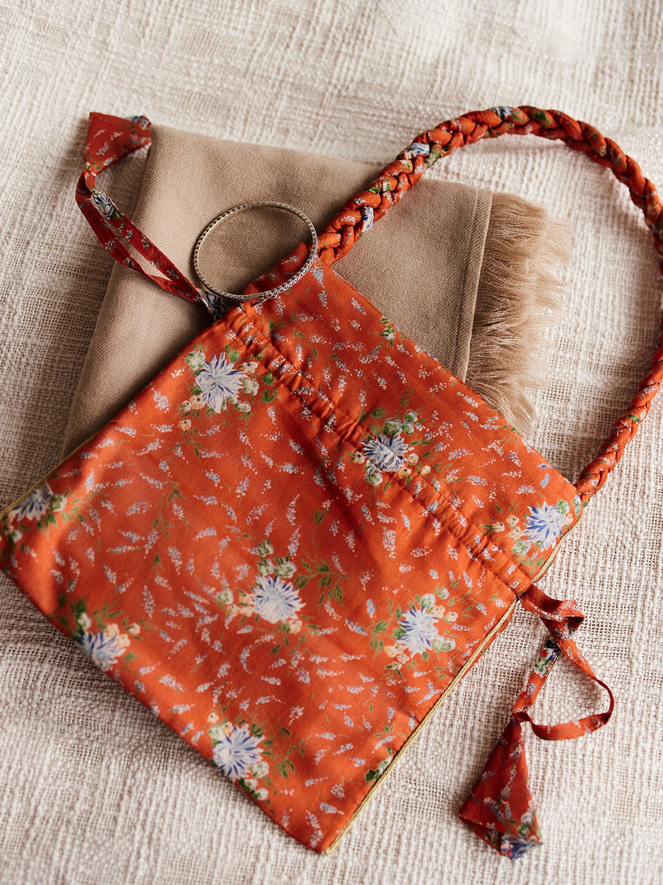 Potli silk sari pouch - Earth tones